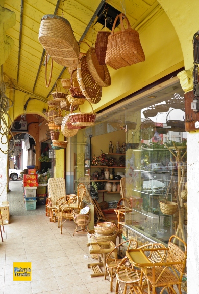 This shop in Seremban makes good use of the kaki lima to display its products.Raffles probably encountered the kaki lima in Java where the Dutch had introduced town planning practices in the construction of Batavia (Jakarta). But it is likely that kaki lima were around in Malaysia before Raffles. The earliest examples of kaka lima in Malaysia are probably those in Melaka's Heeren Street (Jalan Tun Tan Cheng Lock) where many of the buildings predate the establishment of Singapore. Many of the kaki lima on this street are walled off and some are even fenced in so that the pavement forms part of the town house rather than a public space. Pedestrians therefore have to walk along the road since the sidewalk is blocked.