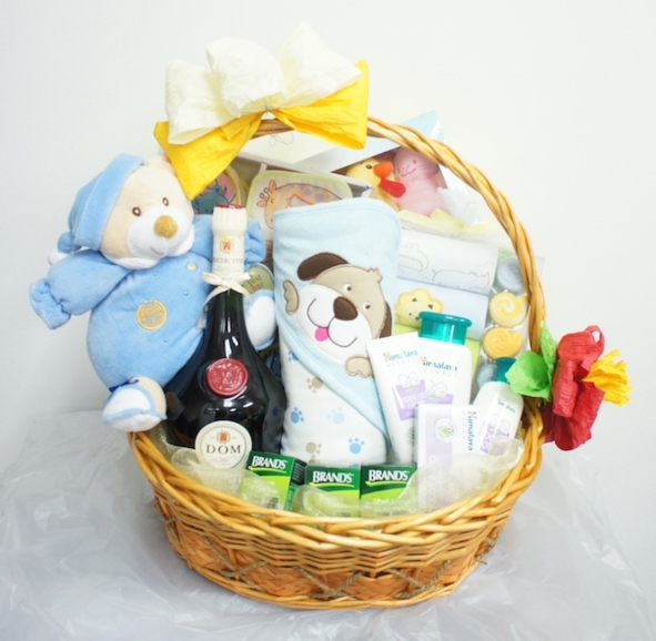 Newborn Gift Basket with Bénédictine by Gifts from HeavenAs it is 40% alcohol or 80 proof, nobody is suggesting it is good for baby, but Malaysian mums seem to find it a comfort.