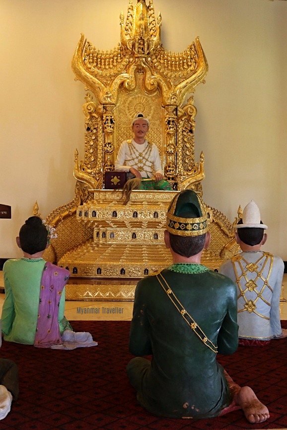 King Mindon display at Governor's House, Pyin Oo LwinMandalay is not a very old city, having been founded by King Mindon in 1857 as the capital of the Kingdom of Burma. At its centre was the Royal Palace surrounded by thick walls and a moat. In 1885 the British occupied the town at the end of the Third Anglo-Burmese War. They exiled the King and were said to have looted many of his treasures, some of which found their way to London’s British Museum. The area within the city walls became known as Fort Dufferin. The city expanded, with streets laid out in a grid pattern which still survives, but the country’s centre of power shifted to Rangoon, the new capital.