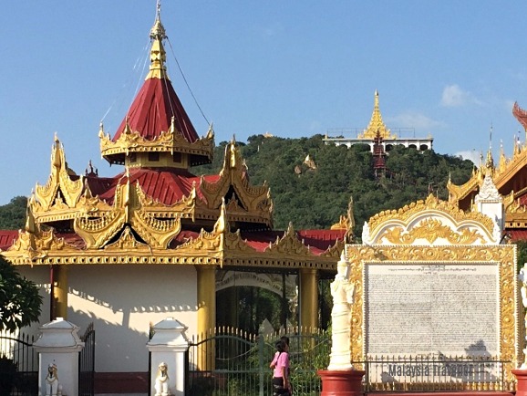 Mandalay is a flat city apart from the 240 metre high Mandalay Hill after which the town was named. It is a pilgrimage site for Buddhists and is speckled with pagodas and monasteries. There are steps all the way to the top but you have to go barefooted in places. Alternatively you can ride a pick up or motorbike for a fee.