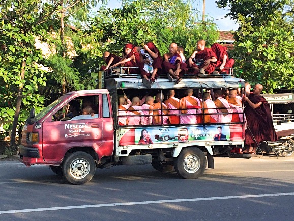 It is not a pedestrian friendly town; it is flat but distances are vast as attractions are spread out. Pavements are badly maintained or non-existent and pedestrians have to take care of open monsoon drains. Traffic is heavy and it is hot and dusty as Orwell said. As for his five Ps, I saw plenty of pagodas, stray dogs, and priests, assuming he was talking about Buddhist monks. I didn’t see any pigs or ladies of the night but no doubt they are around. I would add two more Ps - pollution and pick-up trucks.