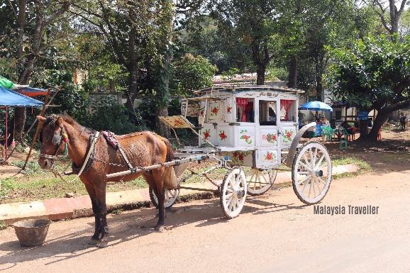 This poor horse looks frailA quaint means of transportation here is the myin yahta, a horse-drawn carriage that resembles a miniature stagecoach, which was introduced during the British era. They now mainly cater for tourists (mostly local) and courting couples.