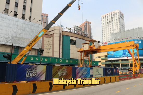 The Cathay Cinema once stood here.Jalan Bukit Bintang finally peters out to join Jalan Pudu. Here too construction work for the MRT is going on.