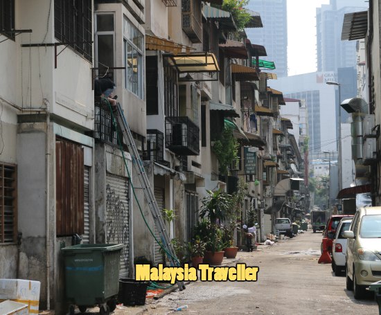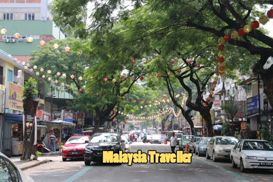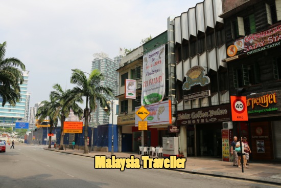 Jalan Alor in the daytime. At night tables, chairs and food stalls are set up along here.Running parallel to Jalan Bukit Bintang is a road called Jalan Alor which is transformed into a food street at night as hawkers fire up their woks and serve all the local favourite dishes to hungry diners at makeshift tables by the roadside.