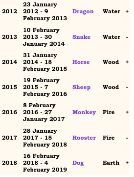 The twelve Chinese animal zodiac signs are well known. In addition there are the 5 element signs: