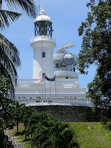 The lighthouse tower was constructed in 1863 by the British but the first lighthouse on this site was built in the 16th century by the Portuguese to prevent their spice and treasure-laden galleons from being dashed on the rocks below as they negotiated the Straits of Malacca which are at their narrowest point along this stretch of coastline.