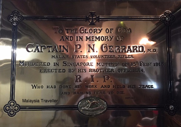 There are a lot of brass plaques and stone tablets mounted on the walls of the cathedral in memory of some of the early colonial administrators and soldiers who served in Malaya. Some of the more notable inscriptions here include: