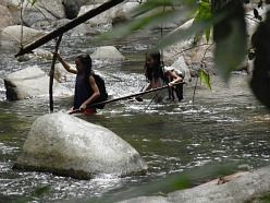 In total you have to cross the river 6 times to reach Chiling Waterfall. The first crossing is easy - it is by suspension bridge. Then there is a 40 minute walk before reaching the second crossing. Thereafter the remaining crossings are just a few minutes apart from each other. |