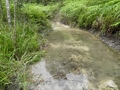 If you are on the right path, you will probably encounter large puddles covering the whole track and you will get your first taste of wet feet. (See Recommended Footwear below). |