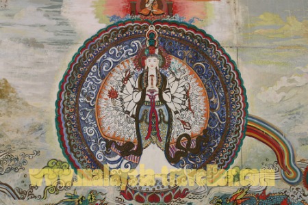 1,000 arm Avalokiteshvara wall paintingThe temple was established in 1976 by Ge Li Rinpoche who used to be known as Yong Si Fu until he gave up his home life to pursue the practice of Nyinma Tibetan Buddhism under the guidance of his teacher Ng Yuen Kong Rinpoche. Ge Li’s teachings are to: