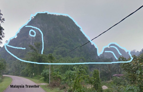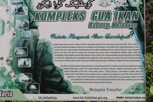 Gua Ikan, which means Fish Cave, is thought to be so-named because a stream flows inside, which may be home to fish. I have a different theory. When approaching on highway 66 from the direction of Dabong I noticed that the limestone hill structure containing the caves appeared to be fish-shaped.