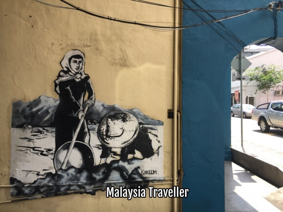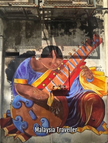 Woman with sitar by Eric LaiMural Arts Lane is a narrow street running between Jalan Sultan Iskandar and Jalan Masjid and its drab walls have been brightened up with dozens of cheerful murals portraying scenes from Malaysian culture, some of them painted by art teacher Eric Lai. I think it is great the way that doors, windows, even vegetation have been incorporated into the murals. Mural Arts Lane is marked number 9 on the map.