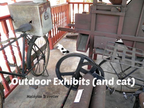 On the balcony upstairs and in the courtyard next to the museum are a few agricultural implements such as a rice threshing machine, a wringer for pressing latex sheets, a couple of old bicycles and so on.