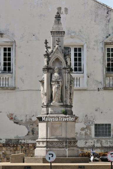 The Logan Memorial Penang features four female statues representing the four moral virtues, Justice, Fortitude, Wisdom, and Temperance. Logan's profile is carved in stone on one side while another panel contains an inscription, glowingly praising his attributes. It reads: