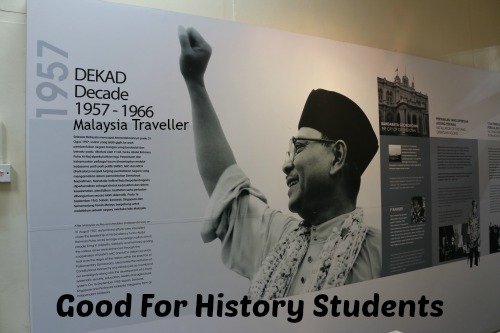 Upstairs has wall displays charting the progress of Malaysia over the decades since Independence.