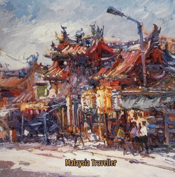 Kuan Im Temple, oil on canvas by Chong Hon Fatt