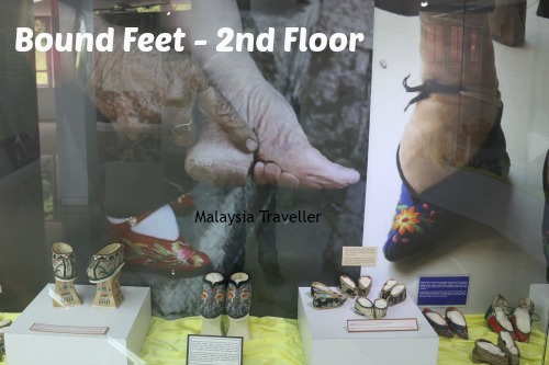 2nd Floor: Beauty Museum with exhibits on differing perceptions of beauty around the world such as tattooing, body piercings, filed teeth, disks in the lips and rings around the neck, foot binding and so on. The photos of un-bandaged bound feet and examples of tiny bound feet shoes are quite interesting.