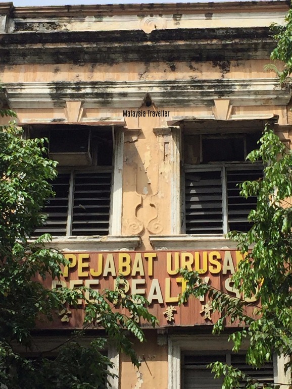 The triangular pediments above the second floor windows are concealed behind the Hong Bee Realty Sdn Bhd sign but other decorative features of the facade can still be recognised from the old photo. Also the building next door matches the photo, although it is in poor shape and surrounded by hoarding, hopefully for restoration work rather than demolition.
