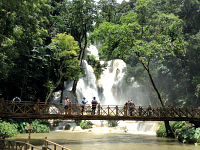Spectacular Kuang Si Waterfall is one of the most popular tourist attractions in Luang Prabang, Laos. The Bear Rescue Centre is also located here.